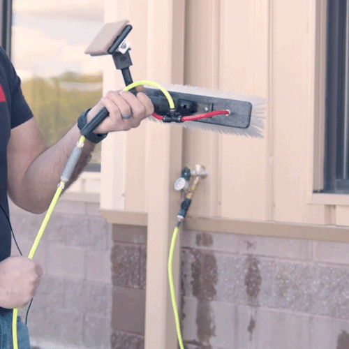 The Uni-Valve Pro from Exceed is the latest water-fed pole in line, on/off valve. With a new and improved design, these valves now feature a new port that allows you to grease them so they'll keep working smoothly. This will only work with water-fed poles that have internal tubing. Non-intrusive, no permanent modifications to your pole are necessary at all. Very easy to operate and install, and a great add-on for those concerned with water conservation on the job.